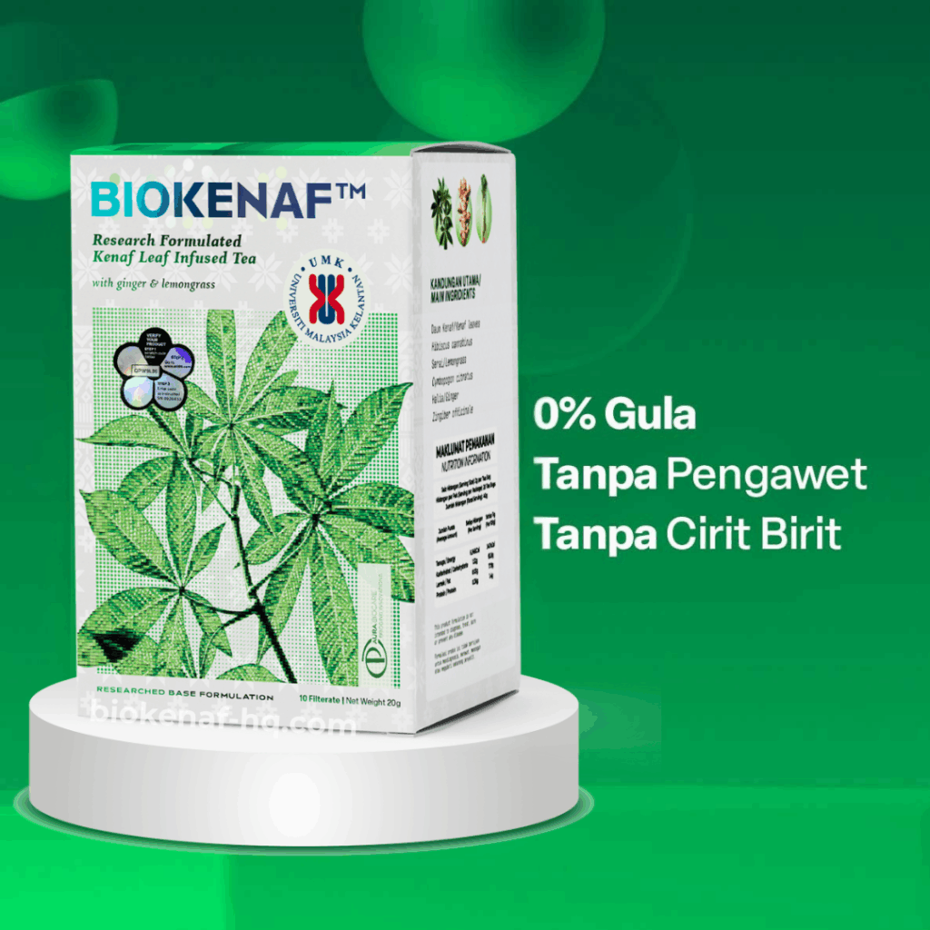 Biokenaf® diformulasi dari bahan semuljadi, 100% Organik tanpa bahan pengawet & telah menjalani ujian makmal ke atas sel hati memastikan keselamatan produk.