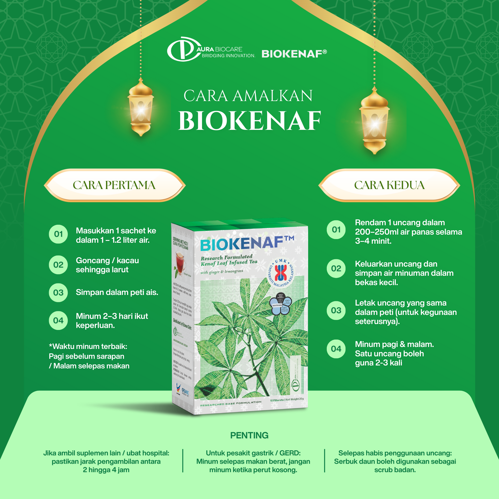 Biokenaf® diformulasi untuk bantu rawat masalah diatas. Sekiranya ada gastrik, betulkan masa makan terlebih dahulu sebelum amalkan teh herba Biokenaf®