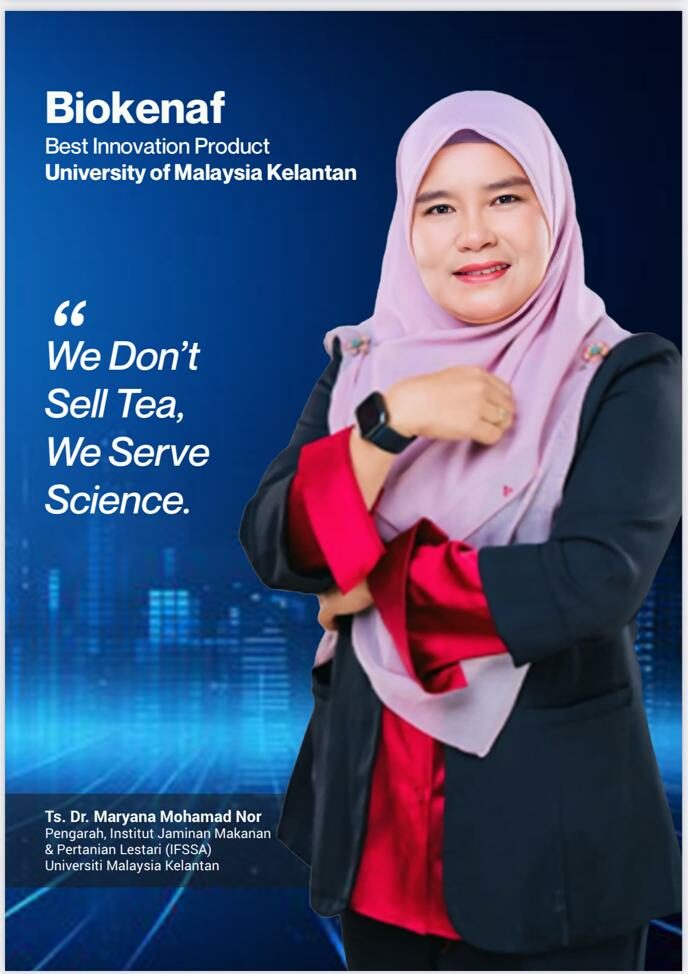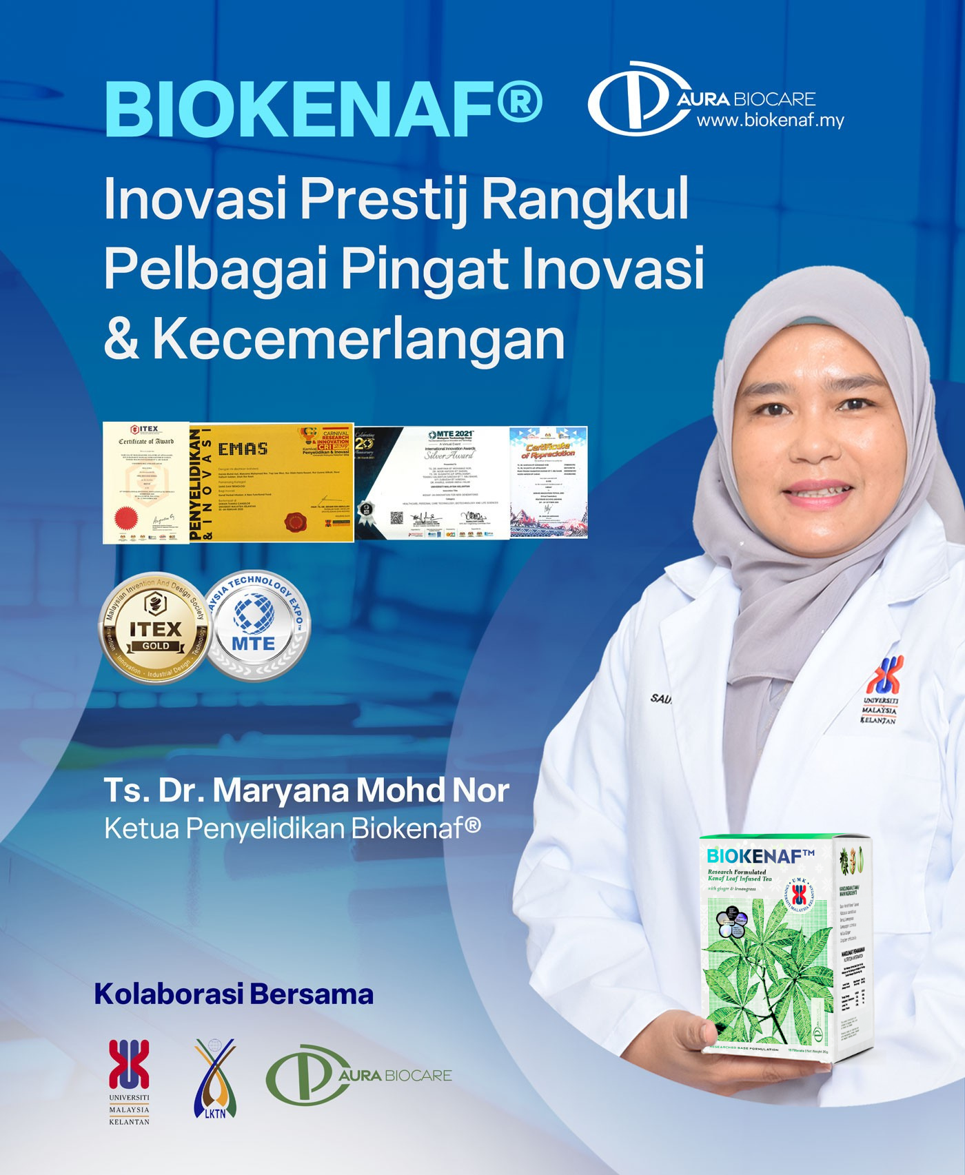 “Sebagai seorang saintis, saya perlu buktikan keberkesanan produk ini, bukan sahaja melalui kajian terperinci, dengan amalkan Biokenaf® saya dapat buktikan penurunan berat & penghapusan kolesterol jahat secara natural.” – Ts. Dr. Maryana Mohd Nor