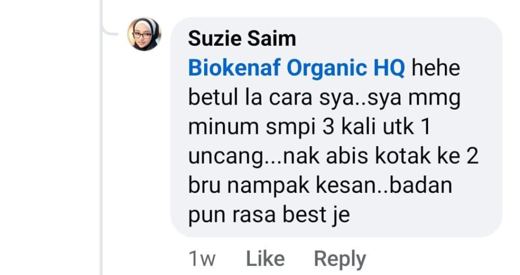 Sebelum saya lancarkan produk ini ke pasaran, saya sendiri telah mencuba Biokenaf® sejak bulan August 2024
